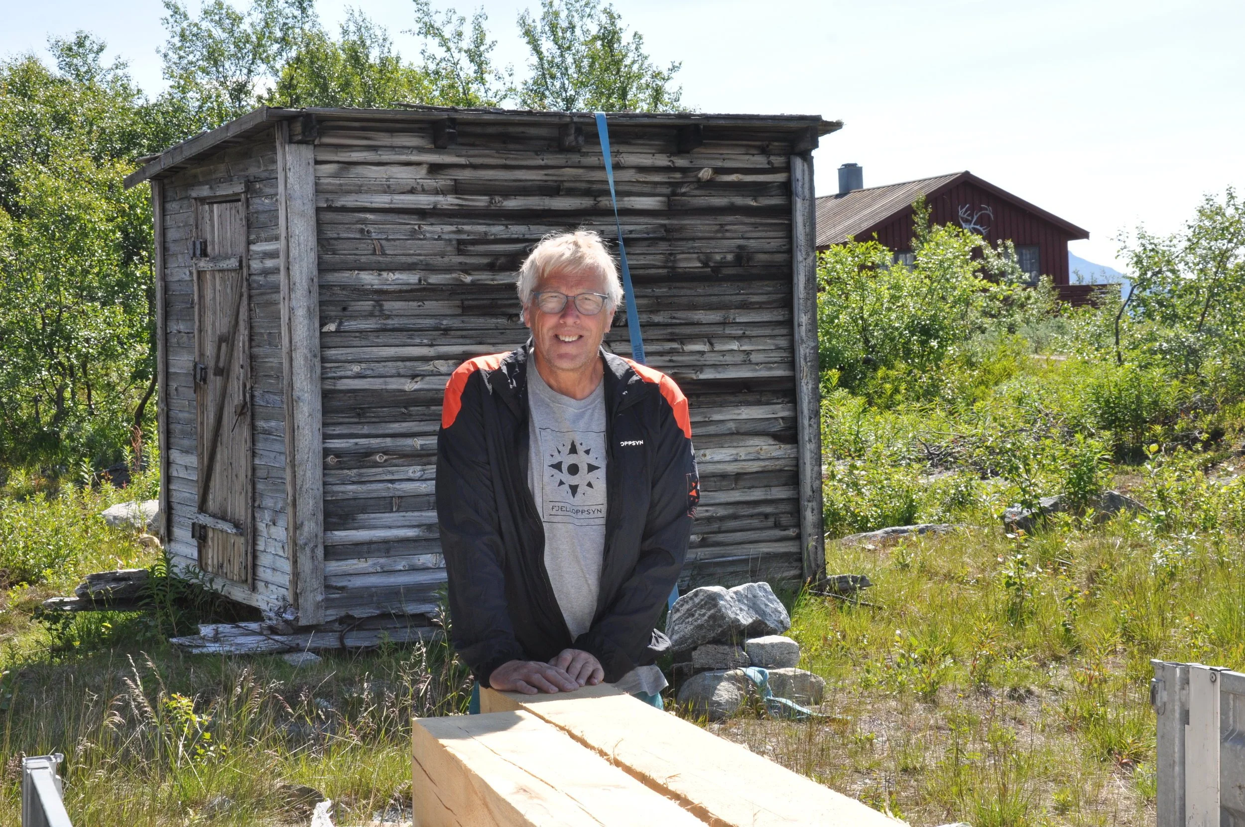 Fjelloppsyn Dag Ringstad i Nesset Fjellstyre framfor kvilebrakka som skal restaurerast