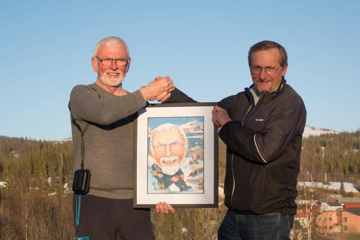 Som fjelloppsynsmann i «verdens nordligste fjellstyre» og Børgefjell nasjonalpark har vi som gode kollegaer ønsket å takke Knut for det kollegiale gjennom mange år. Vi ønsker Knut lykke til som pensjonist og som gave har vi spleiset på en karikatur som viser Knut i sitt rette element.